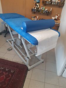 77 – Seine et Marne – Cause déménagement vends table d’ostéopathie marque PROMOTEL France 900€. Dosseret 65×63 + 120×65. Pédale au pied pour régler la hauteur de 50cm (pour une personne âgée) jusqu’à 92cm (pour un bébé). Très solide et pratique. Revêtement plastifié refait + coussin + cadeaux de 3 cartons de rouleaux de draps d’examen. Le plateau supérieur peut être dévissé pour le transport.